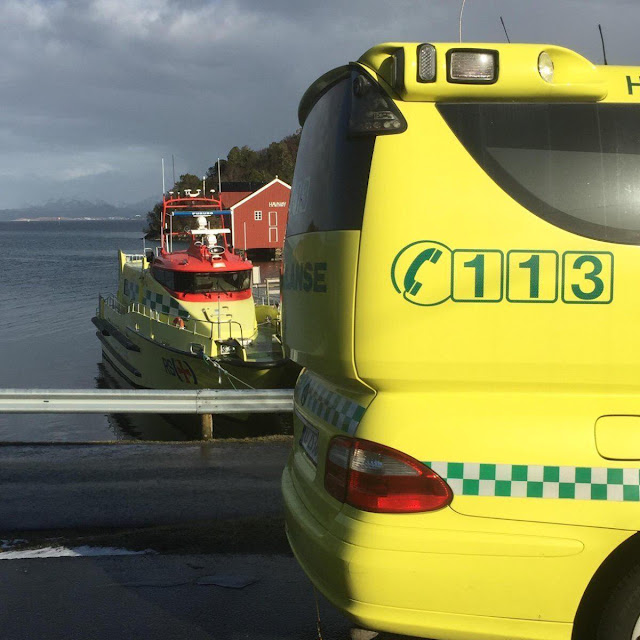Återigen på ambulansbåt i Norge, en trevlig och återkommande variation till mitt ordinarie arbete. Men man måste älska att vara ute på sjön, och ibland höga vågor. Ambulansbåten bemannas av endera en ambulansearbeider / paramedic eller specialistsjuksköterska inom prehospital akutsjukvård samt maritim personal bestående av en kapten/skeppare samt en matros/navigatör. Skutan är ca 20meter lång och är i akutberedskap 365 dygn per år. Båten är många gånger en livsnödvändighet för alla öbor samt ett komplement till Norges ambulanshelikopter-beredskap.