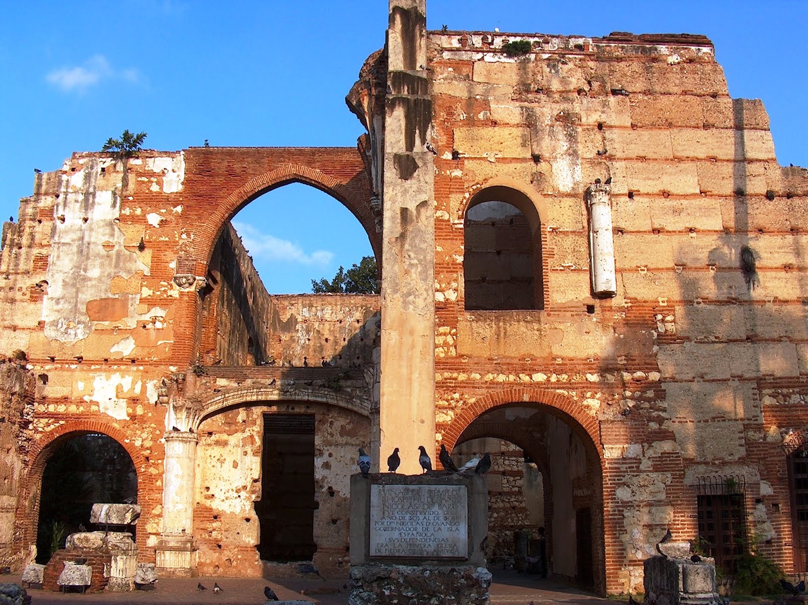 | Hospital San Nicolás de Bari "PRIMER HOSPITAL DE AMERICA" Santo Domingo, República Dominicana by Dr. Ramon Reyes MD Legado español en las américas . San Nicolás de Bari fue el primer hospital de América Construcción. Levantada con piedras de sillería, mampostería de ladrillo y ladrillo en hiladas. Obras. Iniciaron en 1503 con dinero del gobernador Ovando. by eldia.com.do A su llegada al nuevo mundo, después de trasladar la ciudad al lado oeste del río Ozama y trazarla en cuadrícula, al estilo de Santa Fe, a las afueras de Granada, y siguiendo el patrón del castro clásico romano; el gobernador frey Nicolás de Ovando dispuso la construcción de un hospital. Esta edificación civil fue, desde todo punto, necesaria, dada la situación de Santo Domingo como sede del gobierno del nuevo mundo y punto al que acudían todos los exploradores, descubridores y colonizadores de ese portentoso e increíble hallazgo que acababan de efectuar los osados aventureros españoles. Ovando, veterano de la conquista de Granada, se familiarizó con los establecimientos de salud levantados por los moros, famosos en el mundo entero conocido, los que fueron imitados por los cristianos. El Comendador quiso tener un lugar en donde sanar los cuerpos maltrechos por la aventura, aparte de las heridas que sufrían tanto españoles como nativos en el proceso de conquista y pacificación de la isla. Además de las afecciones de los vecinos de la incipiente villa. En la actualidad Hoy en día solo se conservan las ruinas de lo que fue el primer hospital construido en América. Además de dos espacios dedicados al culto, pertenecientes a la capilla original del hospital y que se hallan integrados a la iglesia de Nuestra Señora de la Altagracia, levantada por el ingeniero Oswaldo Báez en la primera mitad del siglo XX, la que fue edificada sobre una parte del solar del establecimiento hospitalario. Las obras se iniciaron en 1503, con dinero aportado por el mismo gobernador Ovando y otros funcionarios de su gobierno. Varias etapas El hospital original, cuya primera etapa de construcción constituyó el núcleo del edificio, fue continuado en 1519, con las limosnas de los vecinos. La tercera etapa de la construcción se inició hacia 1533 y finalizó hacia 1552. Los fondos provinieron en parte de los vecinos y de una donación de la Iglesia, debido a que el hospital quedó bajo la incorporación del hospital del Espíritu Santo de Roma. Alrededor de la capilla El establecimiento de salud se desarrolló alrededor de la capilla inicial, dedicada a nuestra Señora de la Concepción, advocación que retomó luego la catedral. Su planta fue de forma cruciforme, con cupo para sesenta enfermos. Tenía servicios para tísicos, sala para enfermas, y ala de unciones, además de sala para curaciones de heridas y huesos rotos. También tenía ropería y botica. Esta construcción fue uno de los motivos por los que se consideró a Santo Domingo a la altura de Florencia y Barcelona, a medidos del siglo XVI. La edificación no solo tuvo una planta eficientemente desarrollada, sino que su altura fue de carácter monumental. Esta fue una de las razones que propiciaron su demolición cuando la edificación comenzó a peligrar. para evitar que, en su caída, dañara las edificaciones a su alrededor. El desarrollo de la construcción, en el tiempo, de este magnífico establecimiento de salud, permite hoy apreciar los distintos elementos estilísticos que lo constituyeron. Fue levantado con piedras de sillería, mampostería de ladrillo y ladrillo en hiladas, reforzados con piedra en las esquinas y terminales. Varios estilos Los arcos ojivales que corresponden al periodo gótico se entremezclan con las arcadas de medio punto del románico anterior y luego del renacimiento. Así mismo, se observan arcos rebajados en los grandes salones del hospital. También es notable el uso de elementos renacentistas o platerescos tanto en el primer nivel como en el segundo. Son notables las enormes pilastras adosadas con capiteles clásicos, de donde parten, en algunos de ellos, nervaduras para sostener bóvedas de piedra o ladrillo. Preservados Los detalles ornamentales que se han preservado, como son los capiteles de columnas y pilastras, están constituidos por cabezas de angelotes alados, localizados en tres de los cuatro lados. Todavía hoy se observan las rampas de las escaleras que daban acceso a la segunda planta; constituidas por arcos rampantes realizados en ladrillo que contienen aun la altura y anchura de la huella y contrahuella del escalón. Contrastes No todas las cubiertas eran abovedadas, el mayor número era plano, los entrepisos, estaban constituidos por vigas de madera empotradas en los muros, sosteniendo alfajías sobre las que se apoyaban lozas de barro planas como pavimento. Así como también cubiertas ligeramente inclinadas en los niveles altos. Espíritu gótico El espíritu verdaderamente gótico de esta edificación se aprecia claramente en las cubiertas de las dos capillas que permanecen integradas al nuevo templo de La Altagracia. Con bóvedas nervadas, ojivales, realizadas en ladrillo, con arranques en piedra, los que se aprecian claramente en lo que hoy es Sagrario del templo de la Altagracia. Allí también se puede admirar un hermoso retablo barroco. Esta edificación de san Nicolás, en estado de ruinas, constituye un enorme valor ambiental en el tejido urbano de Santo Domingo. Visitantes —Para estudio Un fiel testigo del paso del tiempo, las ruinas de San Nicolás de Bari son un libro abierto para estudiar la arquitectura del periodo colonial, así como para deleite de los visitantes en general. *Por MARÍA CRISTINA DE CARÍAS, CÉSAR IVÁN FERIS IGLESIAS, CÉSAR LANGA FERRER Table of contents Presentación. Introducción: Salud y enfermedad en Santo Domingo. Siglas y abreviaturas. 1ra. Parte: Breve historia de los tres hospitales de la ciudad colonial de Santo Domingo. Capitulo I. El Hospital de S. Nicolás