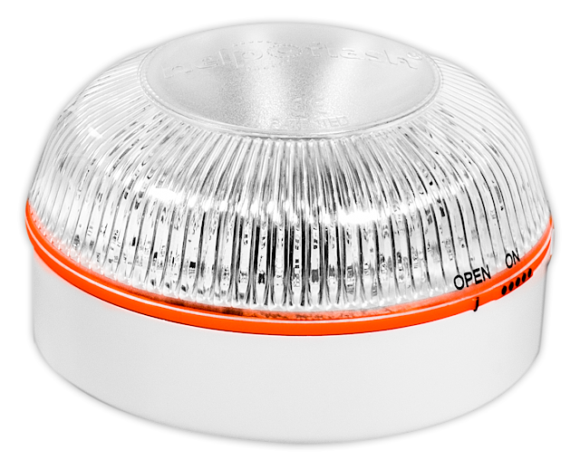 La luz de emergencia homologada V-16 es un dispositivo luminoso de preseñalización de peligro que genera un tipo de luz destellante de color amarillo y que se coloca en el techo del vehículo de forma magnética. Esta señal se ve a un kilómetro de distancia y su uso es muy intuitivo, puesto que se enciende de forma automática cuando detecta el contacto con la chapa del techo. No obstante, también se puede encender de forma manual girando el dispositivo hacia la posición “on”.