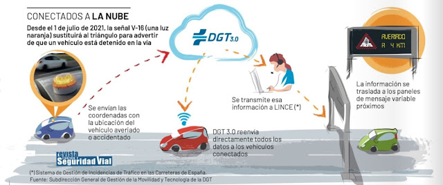 | España: Nueva Luz "BALIZA" de Emergencias, V-16 (Señal) que sustituye los triángulos de Coches "VEHICULOS". |
