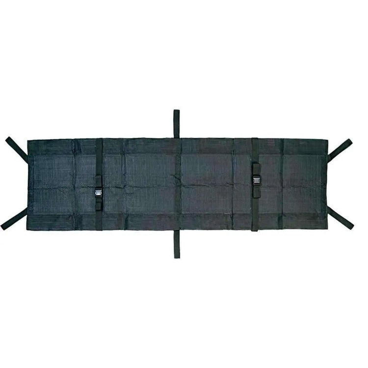 Die TACMED Stingray Poleless Litter besteht aus einem rutschfesten, flammhemmenden Monofilament-Polypropylenmaterial. Zwei Gurte sichern die Trage um den Körper; sechs robuste Griffe erleichtern das Tragen. Dieses Design ermöglicht es Rettungskräften, eine 2-Zoll-Stange, wie z. B. eine Pike-Stange, durch die Trageabdeckung zu stecken oder Trümmer durch die äußeren Griffe zu verwenden.