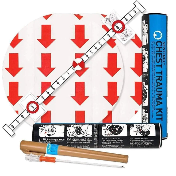 The Sentinel® Chest Trauma Kit is a comprehensive set of products that deliver an enhanced level of user confidence and improve casualty outcomes when faced with symptoms of tension pneumothorax, the third leading cause of preventable traumatic death.