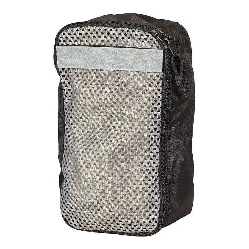 The insides have hook-and-loop sections for individual features. The hip fins are detachable, and the pack comes with three hook-and-loop fastening accessories pouches and a hook-and-loop weapon holster.
