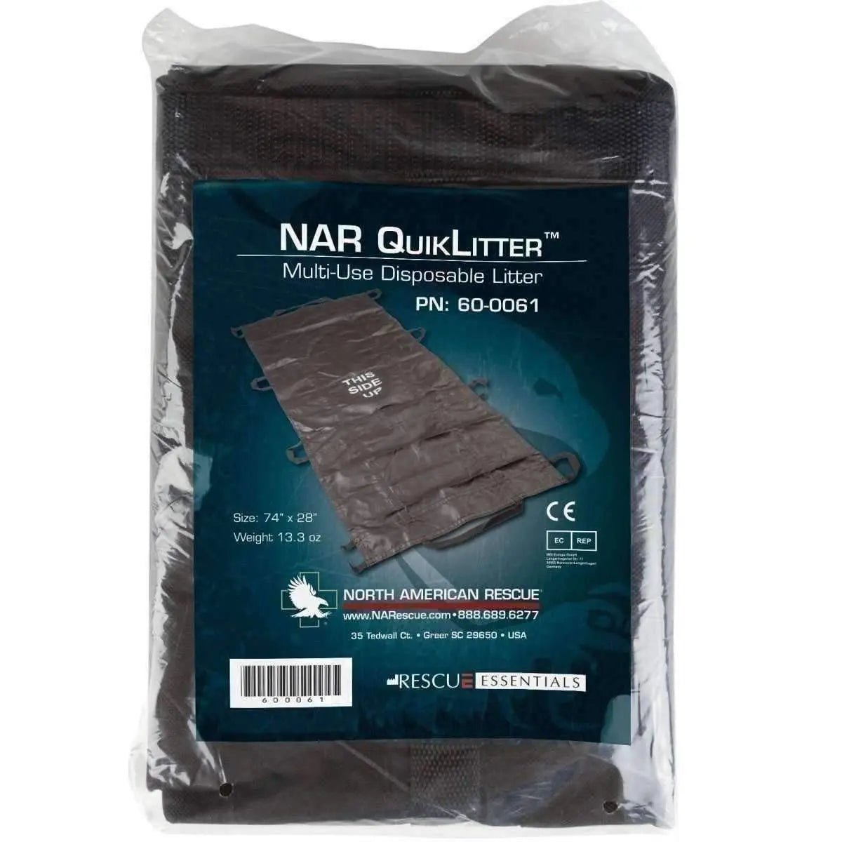 QuikLitter™ de North American Rescue es una camilla de emergencia rentable diseñada para un despliegue rápido para el movimiento de víctimas y es la camilla desechable ideal para incidentes con víctimas en masa, desastres, eventos de tiradores activos, así como para los movimientos cotidianos de pacientes. Construido con polietileno tejido resistente al agua, sin látex y con capacidad para hasta 500 lb, el NAR QuikLitter™ cuenta con diez (10) asas de transporte con cuatro (4) a cada lado y una (1) manija más grande en cada lado. extremo de la camilla para proporcionar múltiples puntos de transporte.