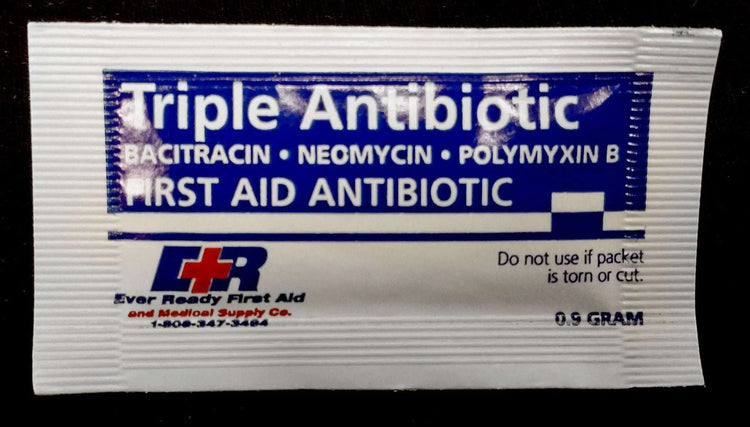 Each 0.9 gram packet contains a 3-in-1 antibiotic: bacitracin,neomycin, and polymixin B. The first aid ointment provides fresh, full-strength relief with each and every application.