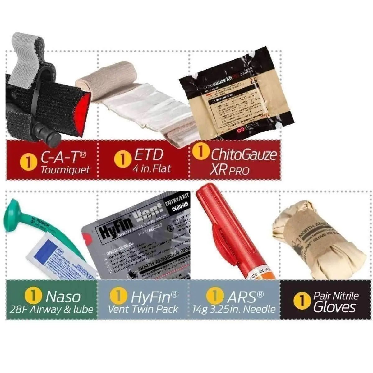 The Eagle IFAK Medic Kit is the ultimate in compact and versatile individual first aid kits. Designed by North American Rescue, this innovative kit is packed with essential life-saving equipment to address penetrating, blast, or traumatic injuries swiftly and effectively.