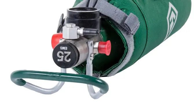 The Oxygen Kit features two C-Clamps with both buckled and hook and loop closures allowing users to place inside or outside their larger Jump Bag.