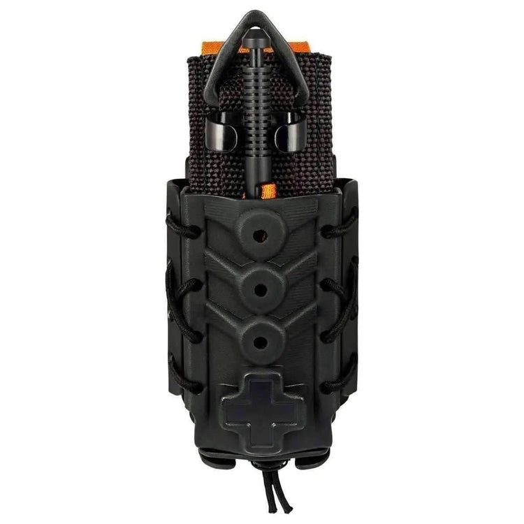 The Kydex Tourniquet TACO by High Speed Gear is designed to retain windlass tourniquets on a belt, rig, or bag using the unique properties of Kydex. Comp-Tac uses airline-grade Kydex, which has a smooth inside finish, is resistant to sweat and solvents, and provides a material that won't damage the tourniquet, or the platform it's attached to. Combining Comp-Tac's Kydex manufacturing capabilities with High Speed Gear's versatile TACO design provides user the best of both worlds in manufacturing and use.