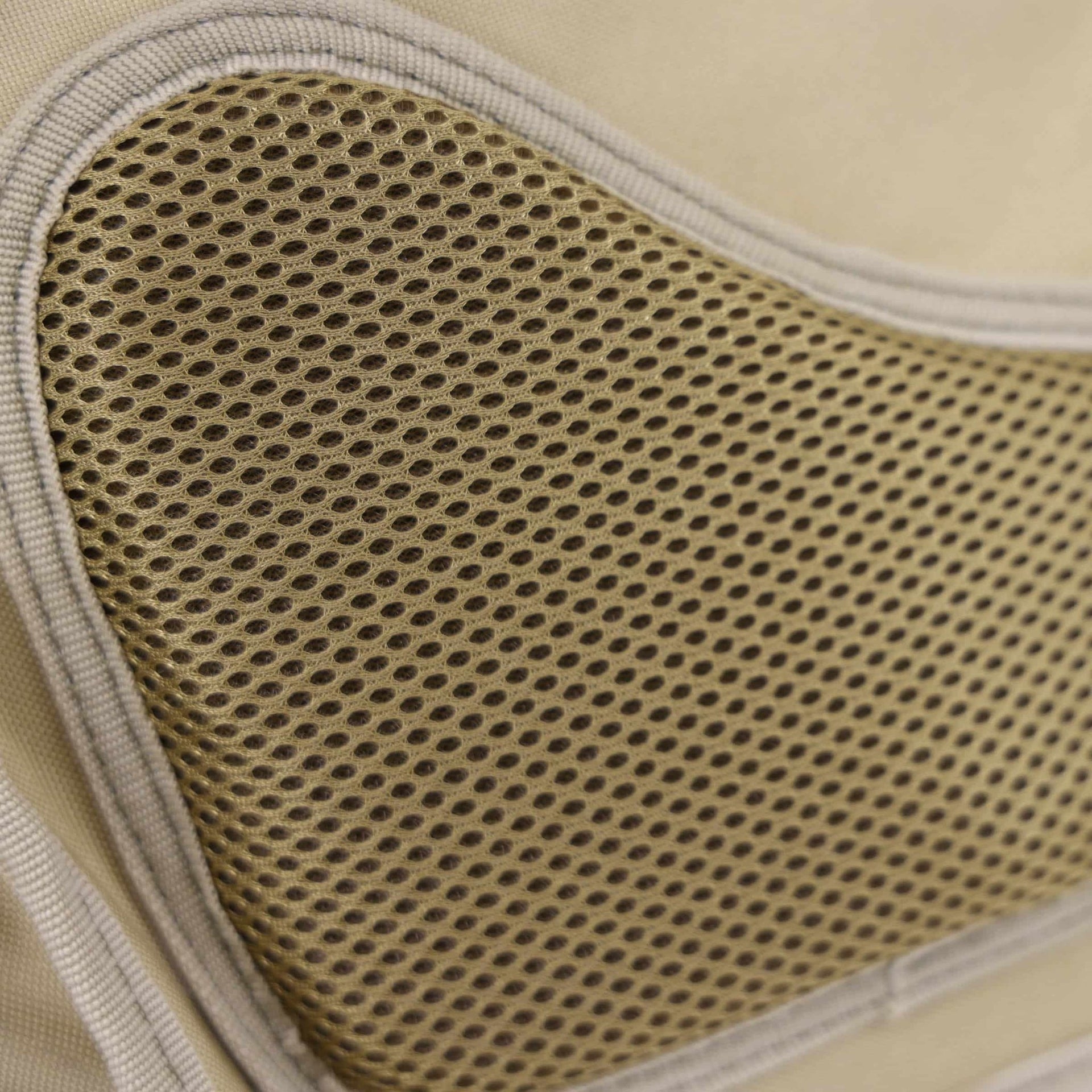 - Strategically placed ergonomic mesh pads on rear provide padding from the weight of the bag and also allow for air to flow through a main channel to minimize perspiration