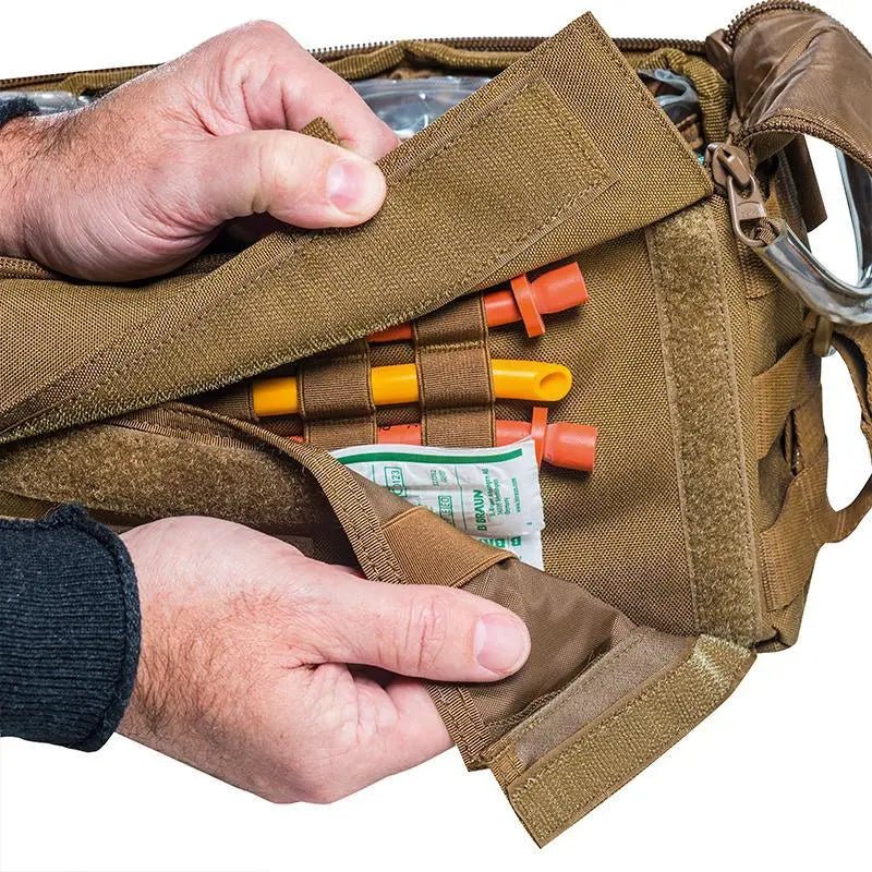 La bolsa puede transportar el complemento completo de un kit de salvavidas de combate o configurarse según las necesidades del usuario.