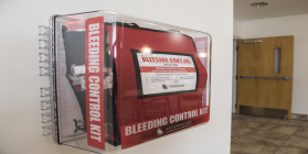 Staging bleeding control kits alongside AEDs demonstrates a comprehensive, all-hazards approach to emergency preparedness.
