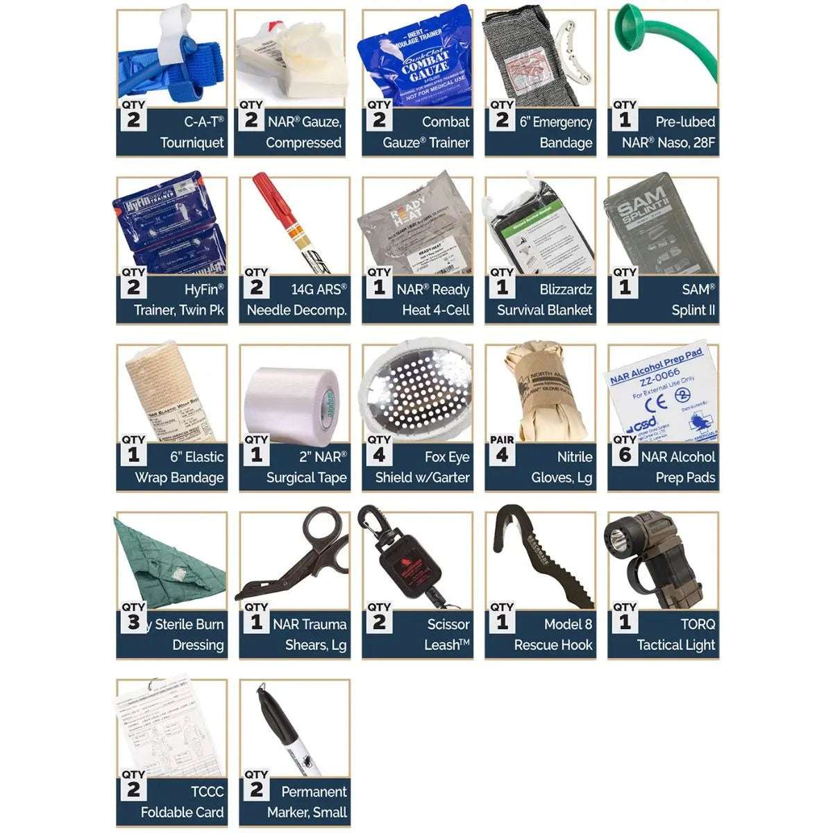 - Comes in Squad Responder Bag, NAR's alternative to the US Army Combat Lifesaver Bag